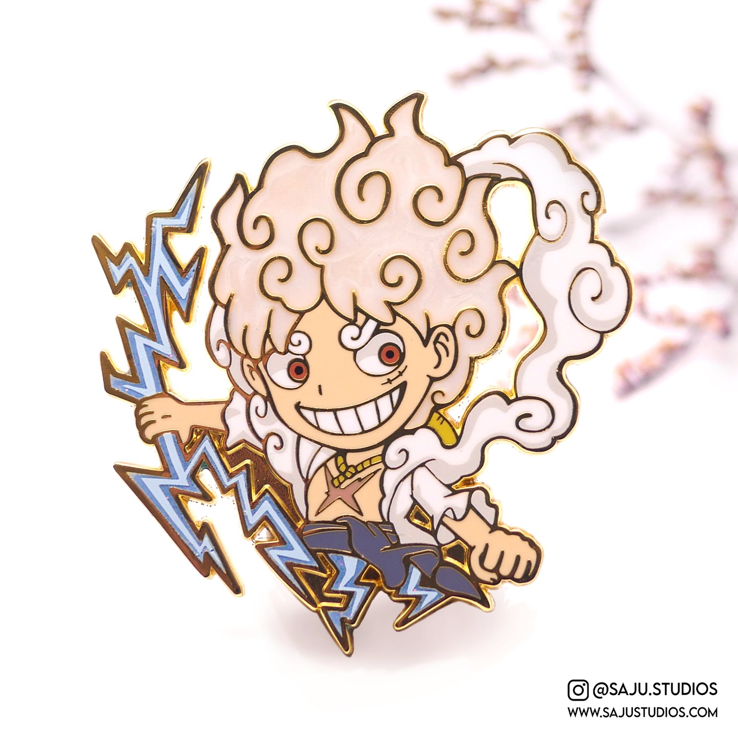 Gold metal enamel pin featuring a shimmery pearlescent effect on the hair, screen print for shadows, and glitter on the lightning.