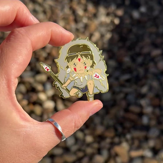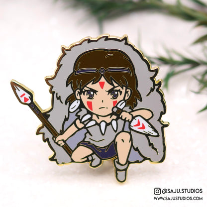 1.9" tall gold metal enamel pin with screenprint effect - comes with two rubber clutches on the back and a custom designed backing card.